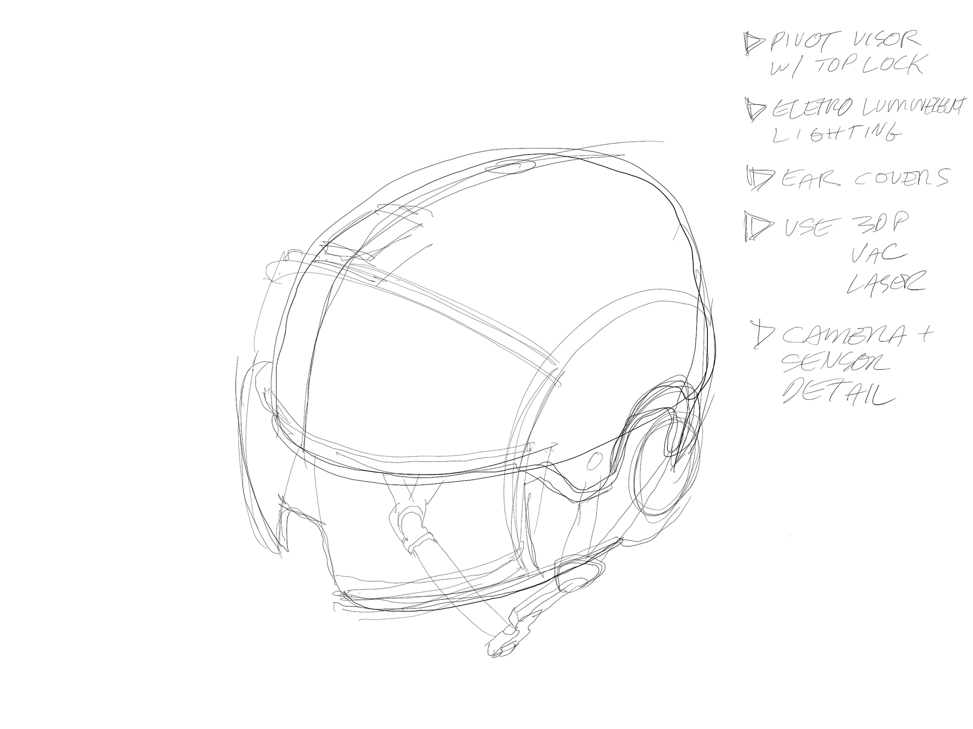 These represent designs for Star Wars Helmet. The work was the basis for experimenting with new technology, while exploring production design for an upcoming project. The prototype included electroluminescent panels to activate details.